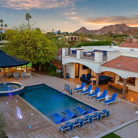 La villa offre servizi di self-catering, come un angolo cottura attrezzato, una zona pranzo all'aperto per la comodità degli ospiti. In cucina sono disponibili anche una lavastoviglie e un forno. La villa Paradise Valley Manor Pool, Spa, Pickleball, Views dispone di un patio per rilassarsi dopo una giornata intensa e di una piscina privata.